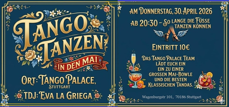 Wir freuen uns sehr auf Euch alle und können es kaum erwarten, einen schönen Tangoabend gemeinsam mit Euch zu genießen!